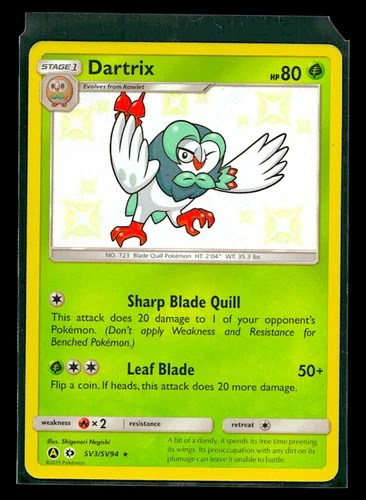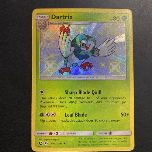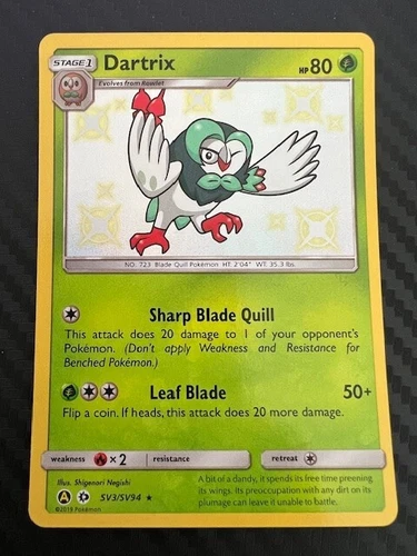 Pokémon TCG Dartrix SV3/SV94 Hidden Fates Holo Shiny Holo Rare NM