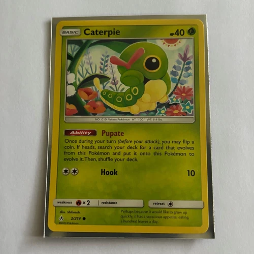 Caterpie 2/214 Common Pokemon Card TCG Sm-Unbroken Bonds With Protective Sleeve