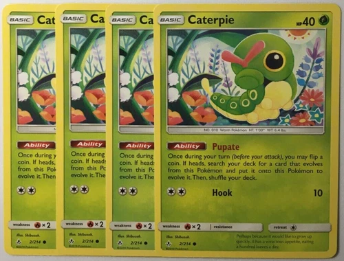 POKEMON 4X CATERPIE 2/214 UNBROKEN BONDS COMMON NEAR MINT-PLAYSET