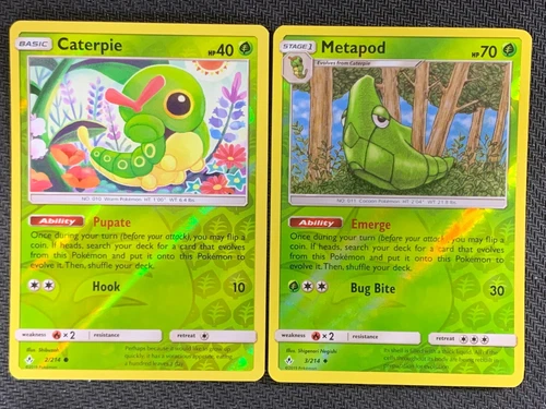 Caterpie 2/214 + Metapod 3/214 Common Reverse Holo Unbroken Bonds