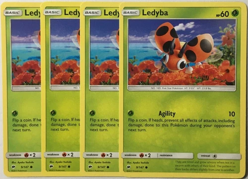 POKEMON 4X LEDYBA 9/147 BURNING SHADOWS COMMON NEAR MINT-PLAYSET