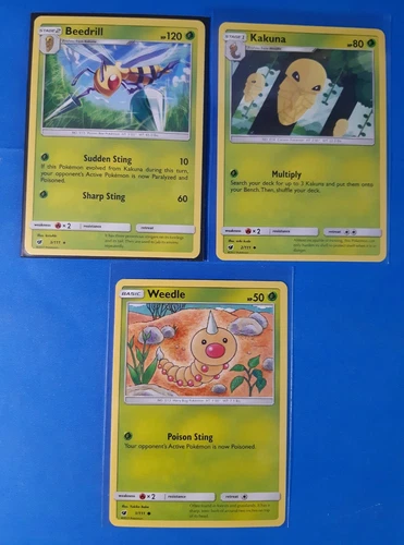 2x Beedrill 3/111, 2x Kakuna 2/111, 2x Weedle 1/111 Crimson Invasion NM