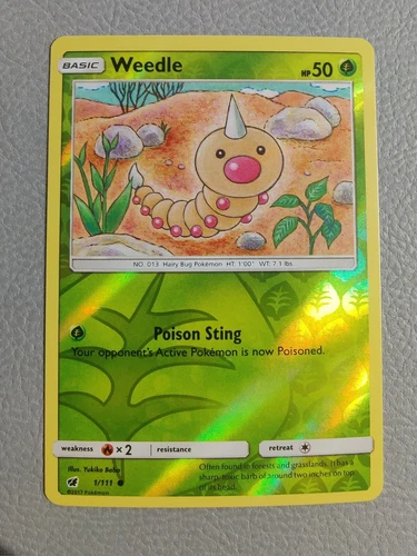 WEEDLE 1/111 S&M Crimson Invasion Reverse Holo Pokemon Card