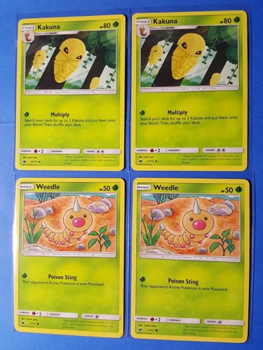 4x Kakuna 2/111, 3x Weedle 1/111 Pokemon TCG card SM Crimson Invasion NM