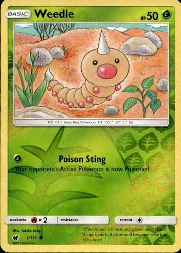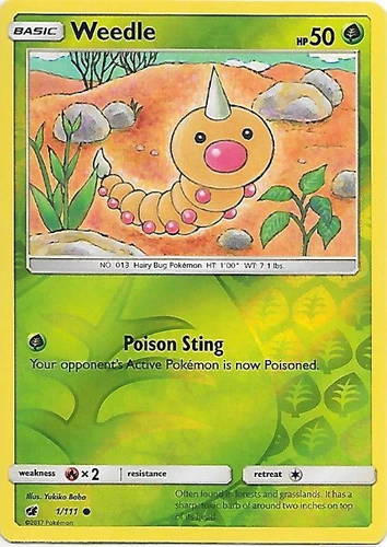 Pokemon Card Weedle - 1/111 - Reverse Holo - SM Crimson Invasion