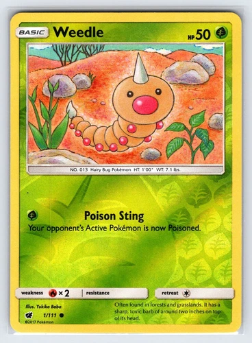 Weedle - 2017 Pokémon Crimson Invasion Reverse Holo #1/111 - NM/MT