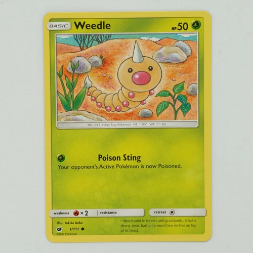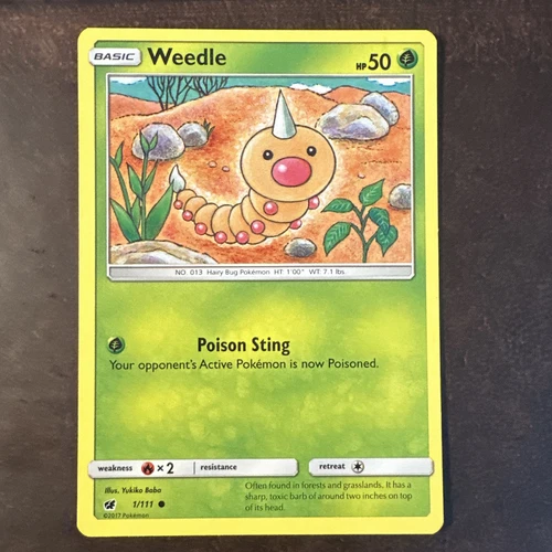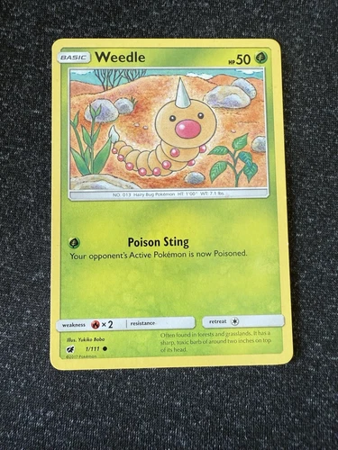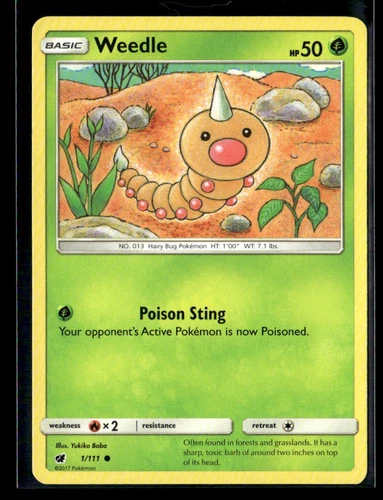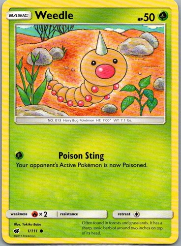 Weedle 1/111 (NM, Pokemon Card, Crimson Invasion, 2017, Grass, Common)
