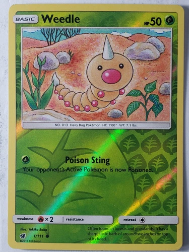 REVERSE HOLO Weedle 1/111 - LP - Crimson Invasion Sun Moon Pokemon Card