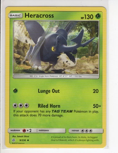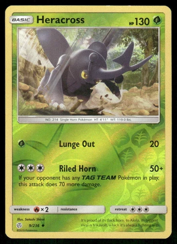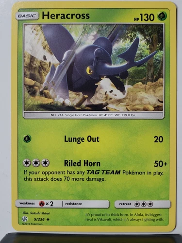 2019 POKEMON TCG COSMIC ECLIPSE HERACROSS 9/236 COMMON CARD