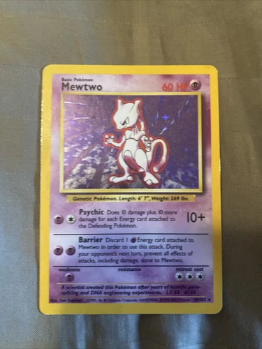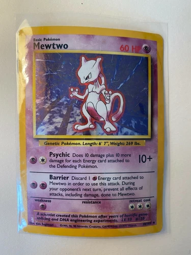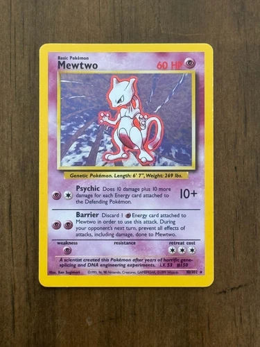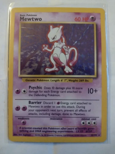 Pokémon Mewtwo Holographic Rare BaseSet Unlimited TCG 10/102 M.P. Condition