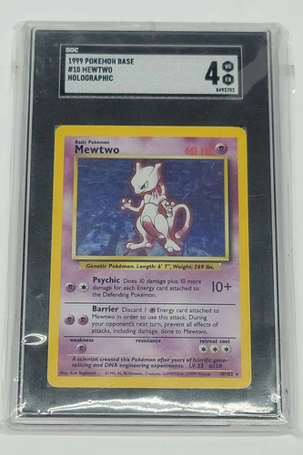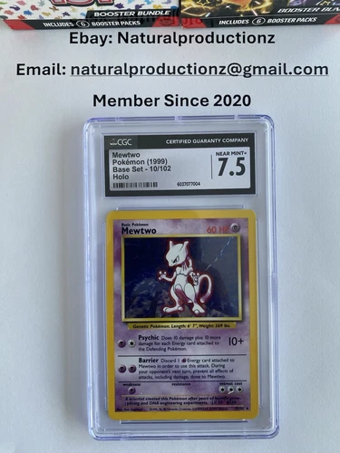 Mewtwo 10/102 Base Set Rare Holo Pokemon Card VINTAGE 1999 Near Mint+ CGC 7.5