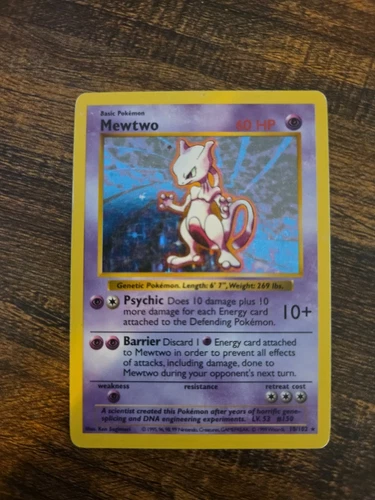 Pokémon TCG Mewtwo Base Set Unlimited Holo Rare 10/102 Vintage