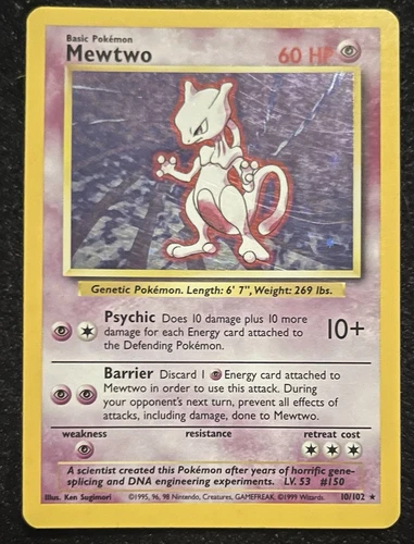 Holo Mewtwo 10/102 1995, 96, 98, 99 Shadowless Varient