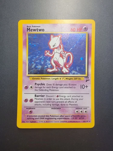 Pokemon Mewtwo Holo Rare Card 10/130 Base Set 2