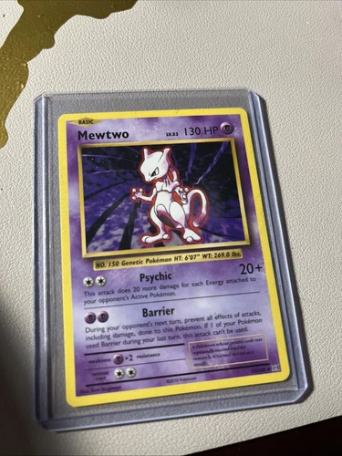 Pokemon Mewtwo Holo Rare Card 10/130 Base Set 2