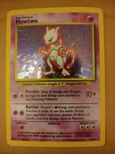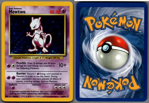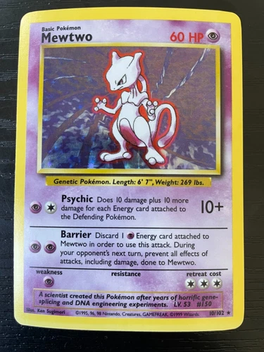 Pokémon Mewtwo Holographic Rare BaseSet Unlimited TCG 10/102 M.P. Condition