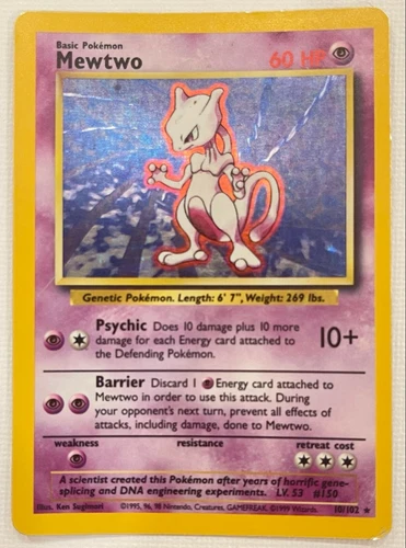 Mewtwo 10/102 Base Set Shadowless Holo Rare (LP) Vintage