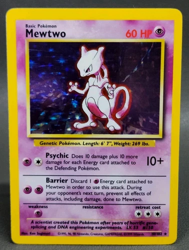 Mewtwo base set holo 10/102 pokemon trading card