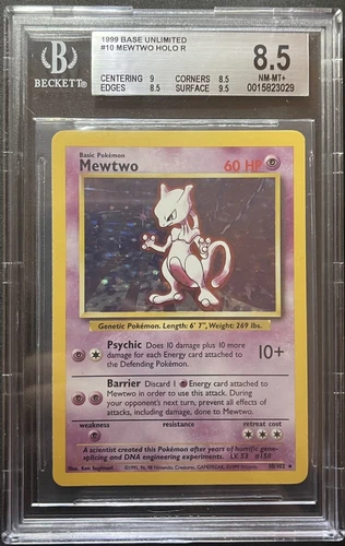 BGS 8.5 NM-MT+ Mewtwo Base Set 10/102 Holo Unlimited Holo Rare