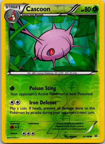 Cascoon 6/108 - Reverse Holo Pokemon TCG Card XY Roaring Skies 2015 Near Mint NM