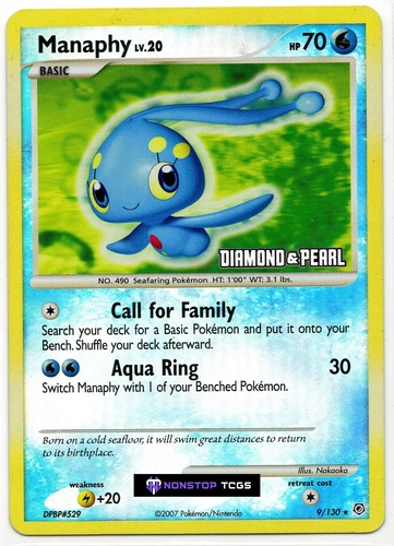 Manaphy 9/130 - Holo Rare - Diamond & Pearl Base Set Pokémon TCG