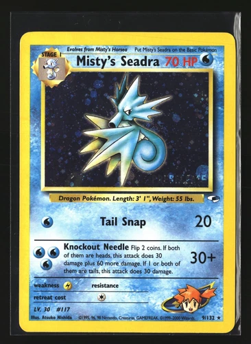 2000 Pokemon Card NM Misty’s Seadra 9/132 Holo Prerelease Gym Heroes