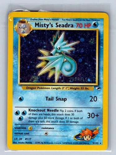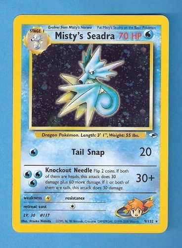 Pokemon cards Misty's Seadra PRERELEASE Holo 9/132, VLP.