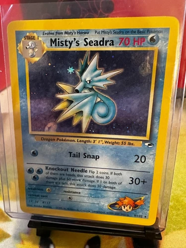 NM | Misty’s Seadra 9/132 Gym Heroes | Prerelease | Great Centering | Pokemon