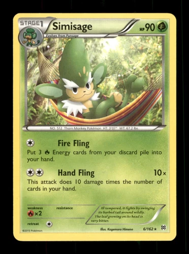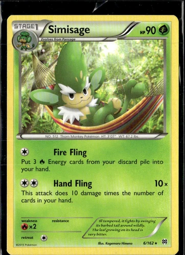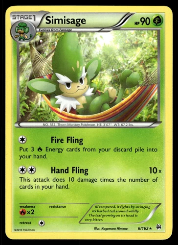Pokémon TCG 6/162 Simisage Stage 1 Rare XY Breakthrough Very Good Condition