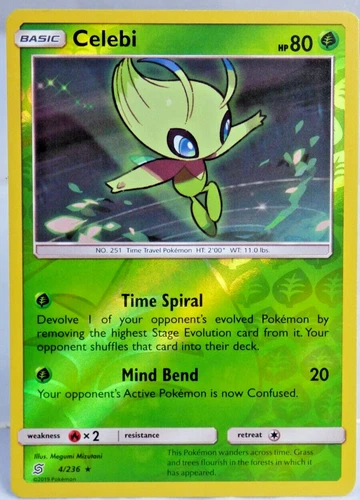 Celebi 4/236 LP/NM Holo Unified Minds Foil SM Pokemon TCG Set Card mythical 2019