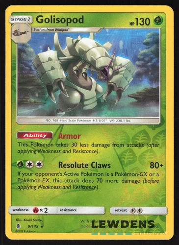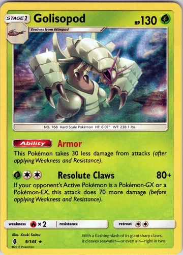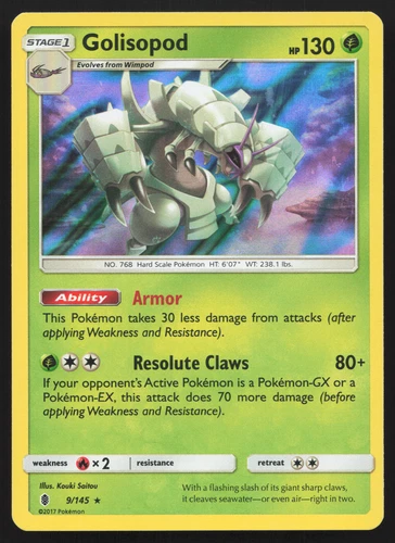 Pokemon : SM GUARDIANS RISING GOLISOPOD 9/145 RARE HOLO - MINT