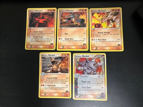 Team Magma’s Rhyhorn 38/95, 67/95, 68/95 & Rhydon 22/95, Holo 11/95 DMG Lot TMTA