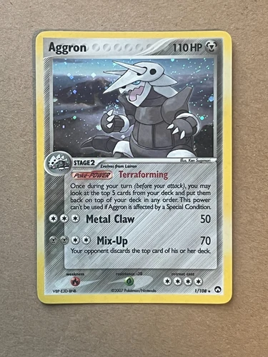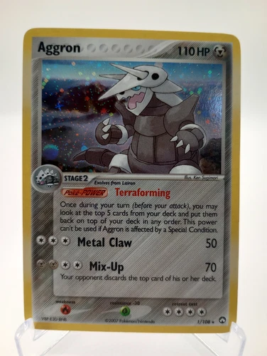 Pokémon AGGRON Card 1/108 Holo Rare LP EX Power Keepers Light Play