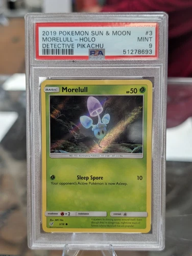 Pokemon PSA 9 MINT Morelull 3/18 Detective Pikachu Holofoil Rare 2019 Holo