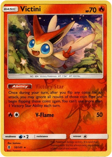 Victini 10/145 Guardians Rising Sun Moon Reverse Holo Pokemon Card 2017