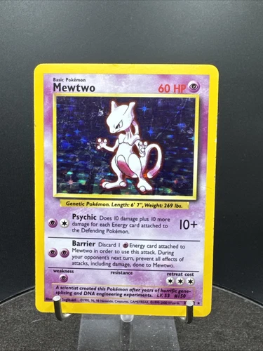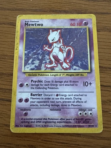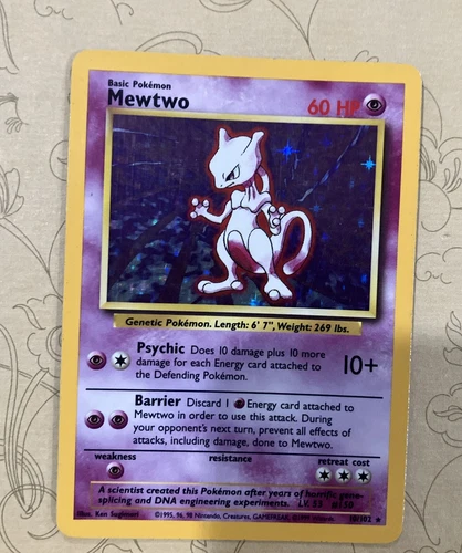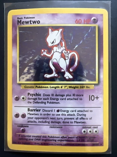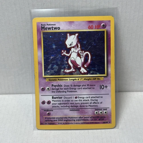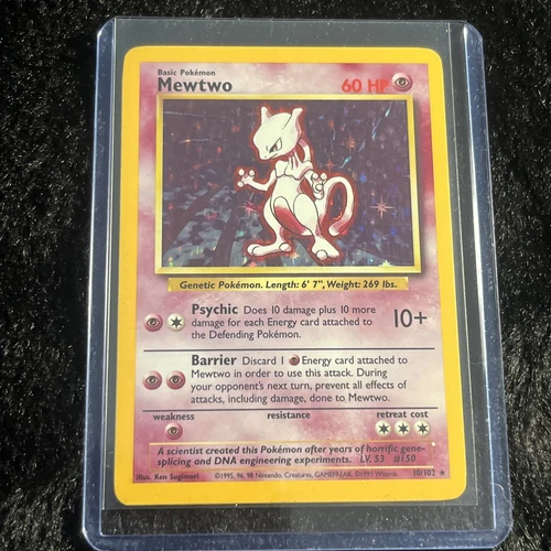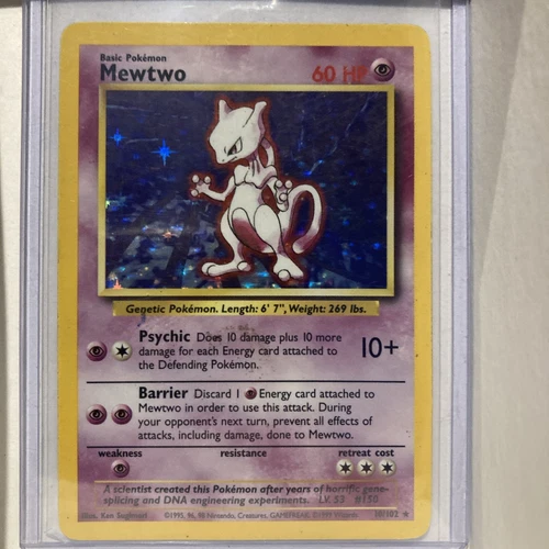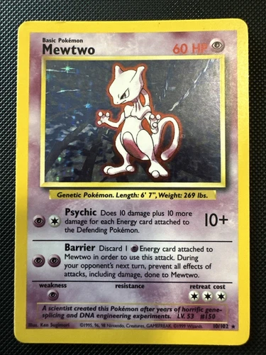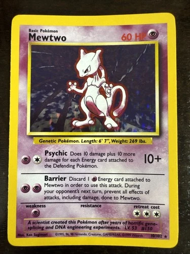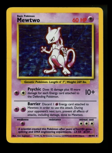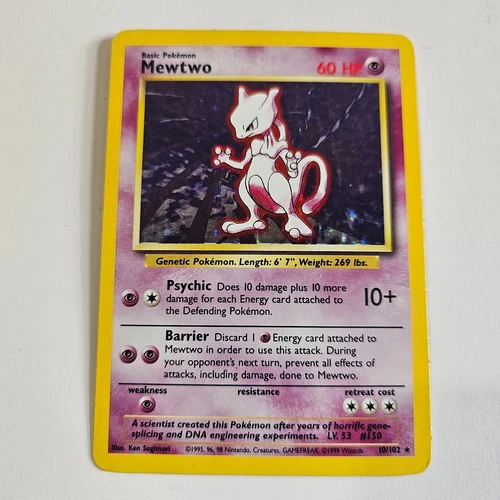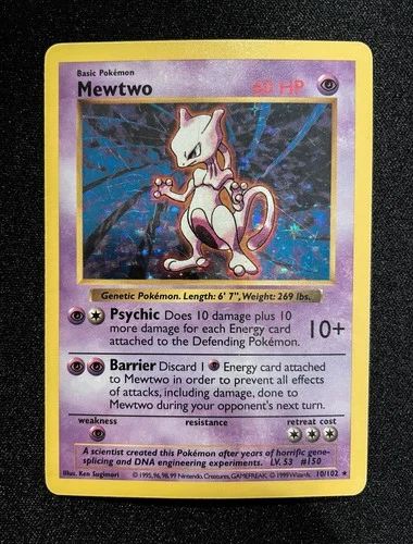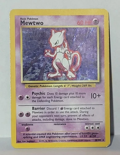 1995 Holographic Mewtwo 10/102 Base Set Genetic Pokémon #150 Rare Pokémon