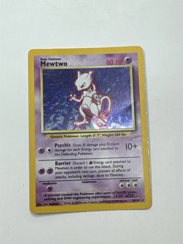 Pokémon TCG Mewtwo Base Set 10/102 Holo Rare 1999 WoTC - MP/HP