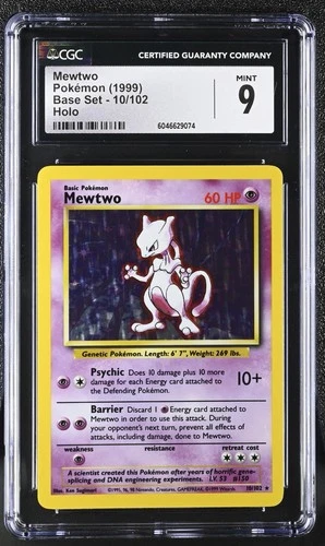 Mewtwo Holo Rare 1999 WOTC Pokemon Card 10/102 Base CGC 9 MINT