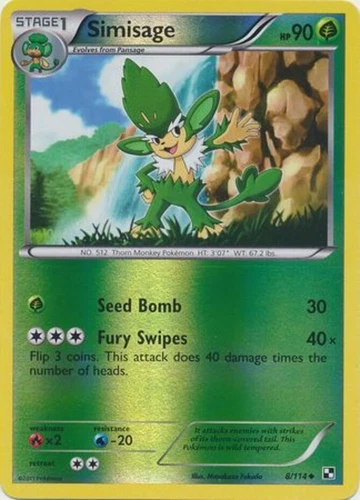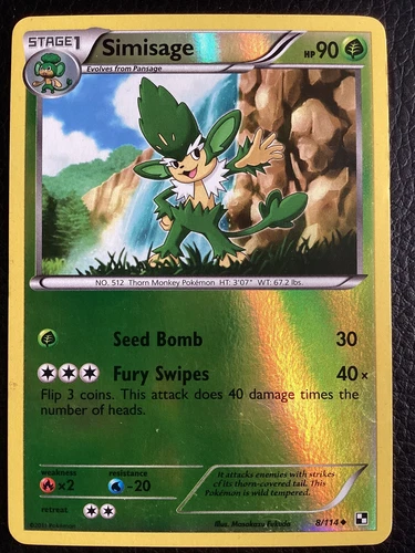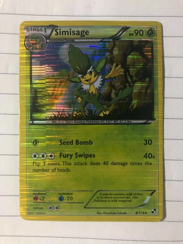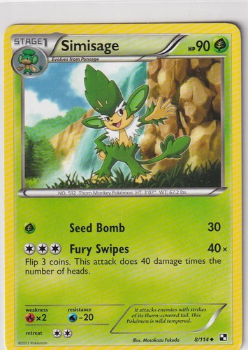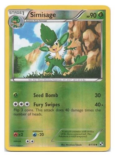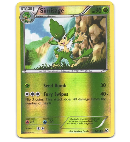 Pokemon 2011 Near Mint NM Simisage Black & White REVERSE 8/114 Card