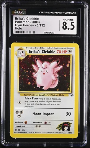 Erika's Clefable-Gym Heroes-Pokemon Card-8.5 Graded-Holo-3/132-NM/Mint+-CGC