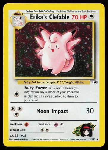 Erika's Clefable - 3/132 - Rare Holo Foil WOTC TCG—Gym Heroes Pokémon NM-MINT