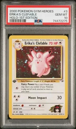 PSA 10- 2000 Pokemon Gym Heroes 1st Edition Holo 3/132 Erika's Clefable
