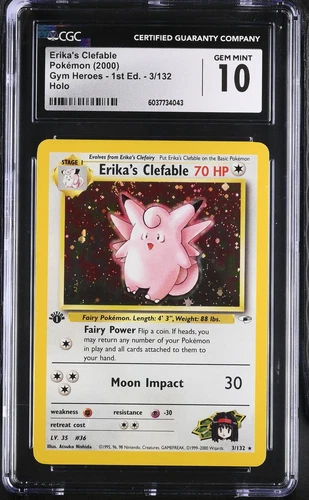 Erika’s Clefable 3/132 - 2000 Pokemon Gym Heroes Holo - POP 4 - CGC PRISTINE 10