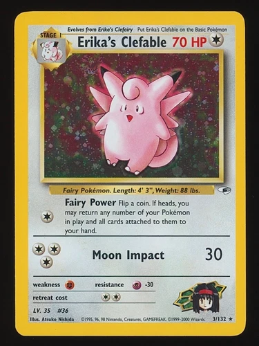 Erika's Clefable - 3/132 - Rare Holo Foil WOTC TCG—Gym Heroes Pokémon NM-MINT
