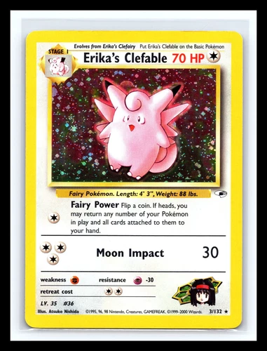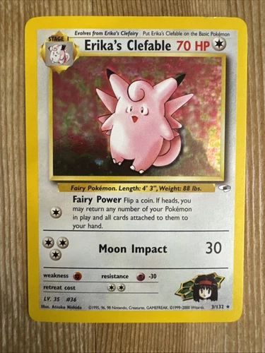 2000 Gym Heroes Erika's Clefable 3/132 Pokémon Rare Holo Moderately Played