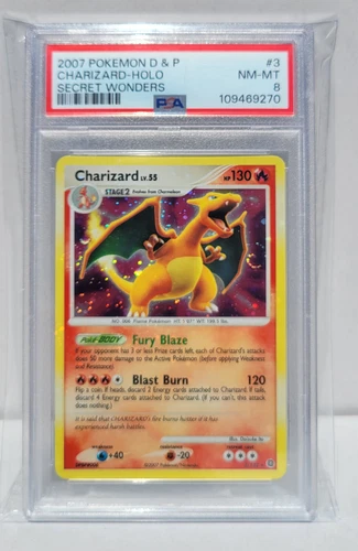 PSA 8 - Charizard 3/132 Reverse Holo Rare - Secret Wonders 2007 Pokémon Card NM