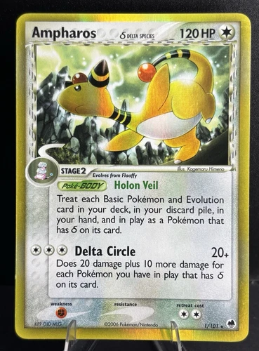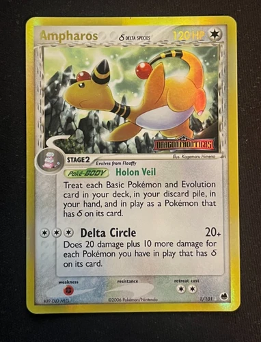 Pokemon TCG Ampharos (Delta Species) 1/101 Dragon Frontiers Reverse Holo 2006 LP