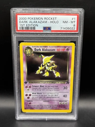 Pokemon 1st Edition Dark Alakazam Holo 1/82 Team Rocket PSA 8 NM/Mint