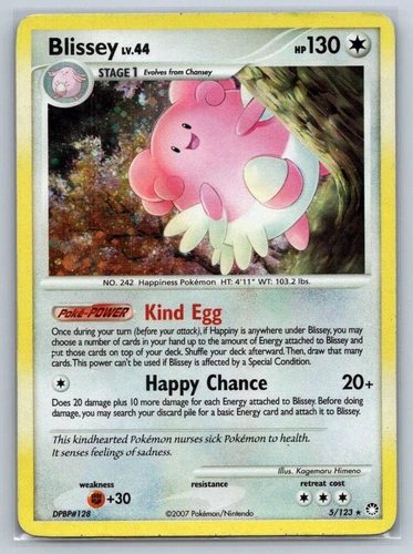 2007 Pokemon Diamond & Pearl Mysterious Treasures Blissey Holo Swirl #5/123