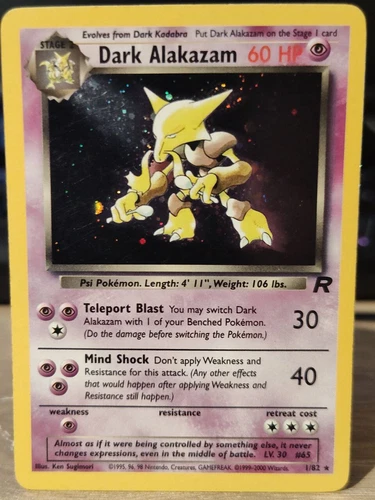 Pokemon 1999-2000 Wotc Team Rocket Rare Holo #1/82 DARK ALAKAZAM